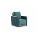 Fotel Betino. Fotel do kanapy Betino z Unimebel z naszego salonu Dobre Meble z ...Bydgoszczy. Bardzo prosta brył fotela z szerokimi bokami. Komfort siedzenia oprócz układu podwójnych sprężyn na siedzisku fotela dodaje duża poduszka oparciowa pod plecami. Poduszka jest nieodłącznym wyposażeniem tego fotela bo bez niej będzie siedzenie bardzo głębokie. Zdecydowanie niższe oparcie od większości foteli z naszej kolekcji. Minimalne nogi z drewna bukowego malowane na każdy kolor z naszej palety. Plecy jak w każdym fotelu obite tkaniną główną. Jak na model fotela w tapicerce nie jest za szeroki. 78 cm to jeszcze tragedii nie ma. Czasami jednak będzie to o te parę centymetrów za dużo. Fotel zdecydowanie bardzo masywny Musimy ubrać go w zdecydowanie jaśniejszą tkaninę i wtedy forma tego fotela zrobi się zdecydowanie lżejsza. Małe nóżki , boczek lekko skrążony. Poduszka może być w innym kolorze.
