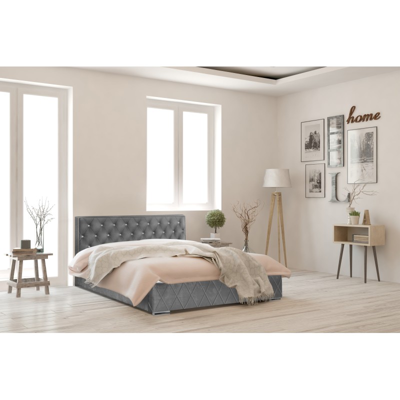 Łóżko tapicerowane Crystal. Łóżko tapicerowane Crystal w największym wymiarze materaca to 200 x 200 cm. Fason tego łóżka jest zrobiony jak to niektórzy mawiają , na bogato. Nie dosyć, że zagłówek jest przeszyty na małe romby to jeszcze w każdym jego kącie znalazł się diamencik. Gdy to był tylko jeden diamencik to jeszcze pół biedy ale jest ich co nie miara. Czym szersze łóżko tym będzie ich więcej. To jakie zmieści się do Państwa sypialni na Osiedlu Symfonia czy Panorama Wiślana ??? Przecież czym większe łóżko to szerszy zagłówek a czym szerszy zagłówek to więcej diamencików. A o powierzchni do spania to już nie wspomnę. Spokojnie, uspokoję Państwa. To nie są oryginały !!!! Gdyby tak było to jedne taki diament to proszę sprawdzić. Normalnie szok .To takie łóżko by kosztowało krocie, a tak to 120 x 200 od 2680 zł, 140 x 200 od 2730 zł , 160 x 200 od 2880 zł , 180 x 200 od 2880 zł a 200 x 200 od 3290 zł. A tam tylko jeden diamencik 230000…Zobacz pozostałe modele naszych łóżek tapicerowanych.W cenie stelaż metalowy na podnośniku hydraulicznym na 34 listwach sprężynujących. Dopłata za stelaż z 48 listwami sprężynującymi do łózek w wymiarze spania 140 ,160 i 180 x 200 wynosi 250 zł.