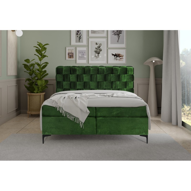 Łóżko kontynentalne Romaro ze sklepu Dobre meble z ..dostarczymy pod wskazany adres bezpłatnie. Tuchola meble nasze dojadą. Zielone łózko tapicerowane do Twojej sypialni. Nietuzinkowy zagłówek łóżka.