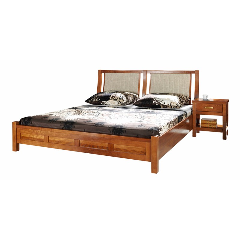 Kolekcja Natural Łóżko 180 A-14. Łóżko A-14 z kolekcji Natural od Unimebel to solidne i funkcjonalne łóżko wykonane z litego drewna jesionowego, przeznaczone pod materac 180 x 200. Konstrukcja opiera się na prostych , geometrycznych liniach co nadaje mu nowoczesnego naturalnego charakteru. Drewniana rama jest trwała i stabilna a widoczna struktura jesionu podkreśla naturalne pochodzenie materiału. Łóżko posiada wysoki zagłówek, który zapewnia odpowiednie oparcie np ; podczas czytania ulubionego kryminału Mrozka. Zagłówek łóżka to najlepsza symbioza drewna jesionowego i tkaniny obiciowej. Niskie wezgłowie w nogach nadaje lekkości formie tego dużego małżeńskiego łóżka. Powierzchnia łóżka zostanie zabezpieczona ekologicznym lakierem lub olejowskiem ( w zależności od upodobań osoby zamawiającej ten model łóżka z drewna). Łóżko A-14 nie zawiera pojemnika na pościel , co pozwala zachować lekka formę i dobrą cyrkulację powietrza pod materacem. To łóżko 180 x 200 z drewna jesionowego łączy estetykę naturalnego drewna z wytrzymałością i funkcjonalnością. Idealnie wpasuje się w nowoczesne, skandynawskie i minimalistyczne wnętrza.
