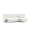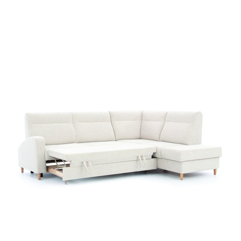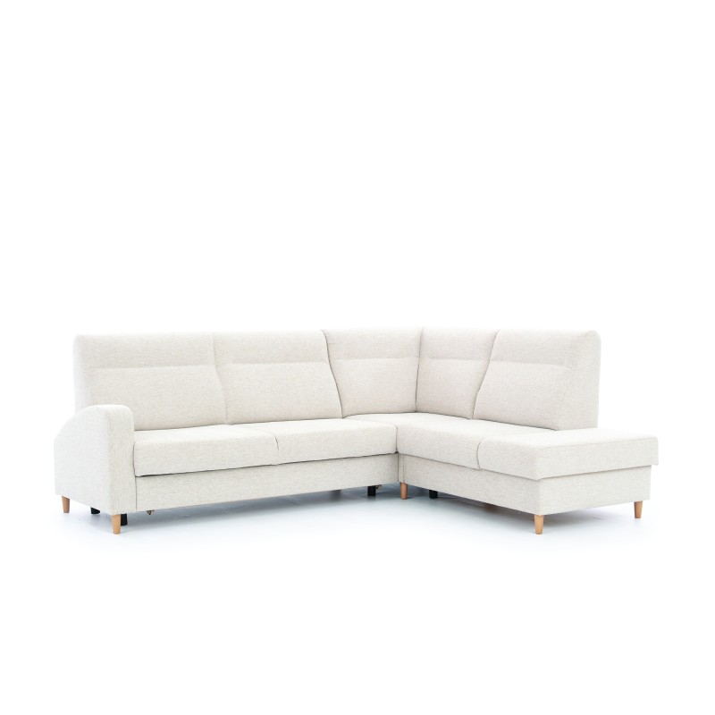 Narożnik Boretto XL. Rodzina Boretto ostatnimi czasy bardzo nam się rozbudowała. Na razie zajmiemy się jedną z największych jego brył. Narożnik Boretto XL z firmy Unimebel. Wymiar katalogowy to 261 x 204  z możliwością rozbudowy prawie pod każdy wymiar. W tym narożniku modułowym producent przygotował elementy narożnika o które możemy powiększyć ten wymiar. Jak zawsze istnieje możliwość wyprodukowania tego narożnika pod konkretny wymiar klienta po uprzednim sprawdzeniu możliwości i wyceny. Spanie jak w większości takich form okazjonalne. Patrząc na wymiary spania narożnika Boretto XL to naprawdę okazjonalne. Zawsze przy takich formach narożnika ten tzw;: delfinek jest inaczej zrobiony niż pozostałe siedzisko mebla. Widać na zdjęciu. Część do spania jest sama w sobie  niższa i co za tym idzie ma inny wkład. Dlatego tutaj zawsze będzie występował inny komfort i odczucie gdy się położymy w opcji części na której siedzimy w ciągu dnia i tej którą wysuniemy do spania. Tylko w wersji narożnika rozkładanego jak kanapa typu DL będziemy mieli ten sam komfort spania na części siedziskowej i oparciowej po rozłożeniu do spania. Warunkiem jest jeszcze to co tak naprawdę zainstaluje tam producent. Bo z doświadczenia , różnie to bywa.