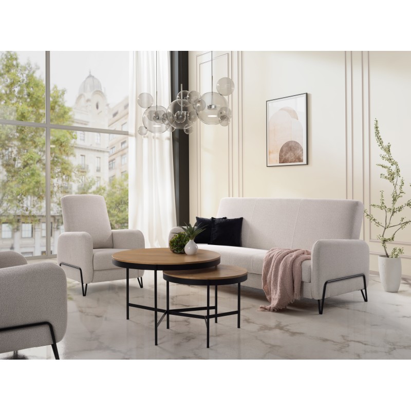 Wersalka Possi z Unimebel. Najnowszy fason wyprodukowany przez cenionego i znanego producenta z Ostrzeszowa. Model wersalki i foteli , które zostały wprowadzone do produkcji seryjnej w ostatnim kwartale 2024 roku. Jak przyjrzą się Państwo wersalce Possi to łatwo zauważyć ,że renomowany producent Unimebel podąża z duchem czasu. Nie tylko posiada w swojej bogatej kolekcji niezawodnych wersalek modele typu Oliwia O czy Gracja II ale kierując się nowymi trendami wprowadza dla swoich klientów modele Possi, Loretto czy Silia. Skrzynia nie jest za duża w związku z tym, że model jest na nóżkach metalowych. W tym momencie odpada zdecydowanie wybór koloru drewna. Czy może do podłogi czy może do komody z drewna dębowego ??? Metal jako nóżki w tej ciekawej formie dobrze wkomponuje się z każdym kolorem drewna. Siedzenie na tym modelu jest bardziej miękkie poprzez zainstalowanie sprężyny falistej i pianki typu HR. Bok zaokrąglony o szerokości około 11 cm . Możemy swobodnie położyć na nim rękę. Tył wersalki już w wersji standard jest wykończony główną tkaniną meblową. Poduszki spełniają rolę dekoracyjną.