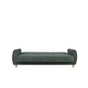 Wersalka Laura to mebel łączący w sobie klasyczne proporcje z nowoczesnym podejściem do detali. Jej design wyróżnia się bardzo ciekawymi boczkami tapicerowanymi. Boczki te są w pełni tapicerowane, co eliminuje kontrast pomiędzy bryłą mebla a drewnianymi elementami bocznymi. Dzięki temu wersalka Laura doskonale wpisuje się w estetykę modernistyczną. Jednak kij ma zawsze dwa końce. Poprzez szerokie boczki przypominające po trosze prawie " elipsę " wskazany model będzie potrzebował więcej miejsca aby go wyeksponować. Niestety odpadają wszystkie mniejsze pokoje w naszych fordońskich blokach. Natomiast jak najbardziej ten zestaw wersalki i dwóch foteli możemy pomieścić w pobliskich domach w Osielsku czy Niemczu. Zamiast wszędobylskiego narożnika można śmiało postawić na Laurę. Tym bardziej, że wersalka z tego kompletu ma tył obity tkaniną główną czyli możemy ją zdecydowanie postawić na środku salonu bez żadnych przeciwskazań. Siedzisko oraz oparcie wersalki zostało wypełnione podwójnymi sprężynami ( typu bonell+ falista na stelażu z drewna i sklejki co jest widoczne na każdym meblu znajdującym się w naszym sklepie Dobre meble z... . Takie połączenie zapewnia komfortowe warunki zarówno podczas siedzenia jak i w czasie snu. Laura jak każda wersalka posiada pojemnik na pościel, który ukryty jest pod siedziskiem. To praktyczne rozwiązanie pozwala na schowanie kołder, poduszek i koców , kiedy mebel funkcjonuje jako sofa do siedzenia. Mechanizm wersalki jest intuicyjny i przystosowany do codziennego użytkowania- wystarczy jeden ruch, aby przekształcić Laurę w pełnowymiarowe łóżko do spania. Geometryczne linia wersalki została zaprojektowana z myślą o uniwersalności. Model ten komponuje się zarówno z klasycznymi dodatkami, jak i nowoczesnymi elementami wyposażenia wnętrz. Dzięki temu Laura może znaleźć miejsce w salonie , pokoju gościnnym czy nawet w przestrzeni większego pokoju dziennego. Kup raz a dobrze !!!