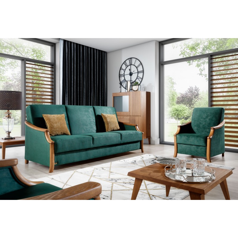 Aby zobaczyć te meble na żywo po wejściu przez rozsuwane drzwi skręcamy w prawo w kierunku sklepu z rowerami. Tam znajduje się sklep Dobre meble z ... Wersalka Elegant IV z Unimebel od salonu Dobre meble z... Bydgoszczy. Ciemna zieleń z jasnym drewnem spanie 125x193 cm. Kup raz a dobrze !!!